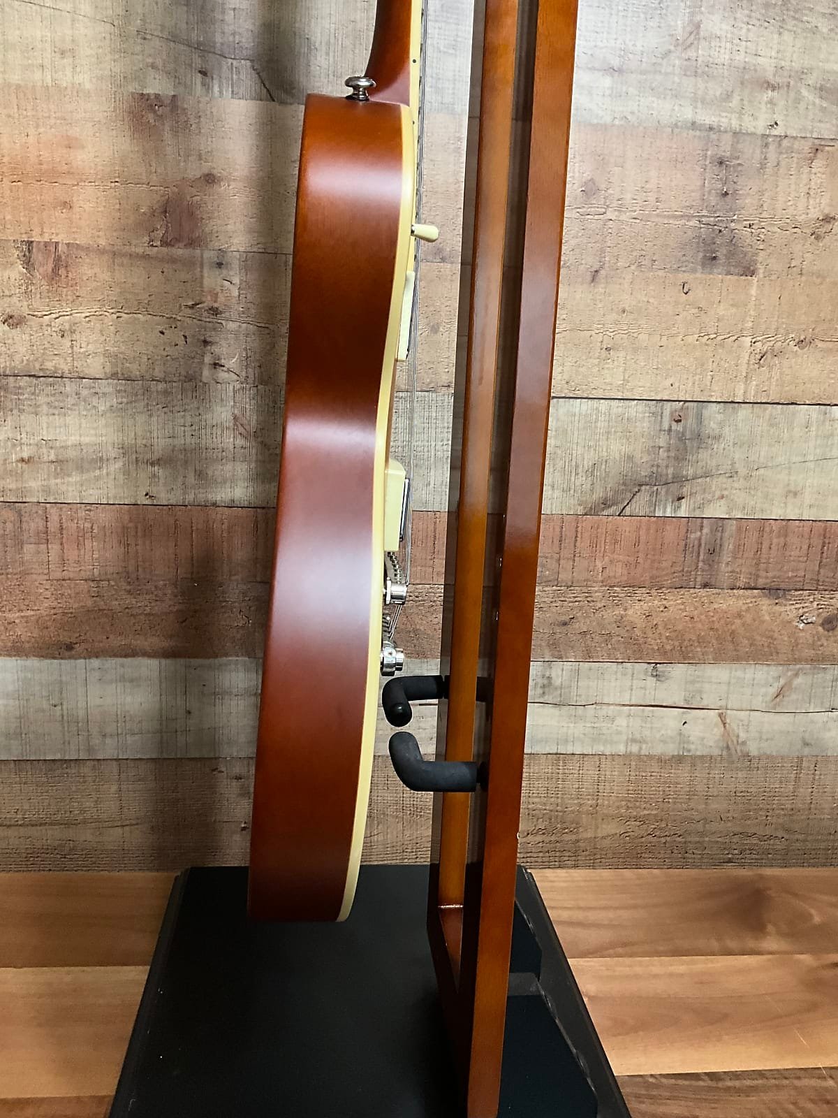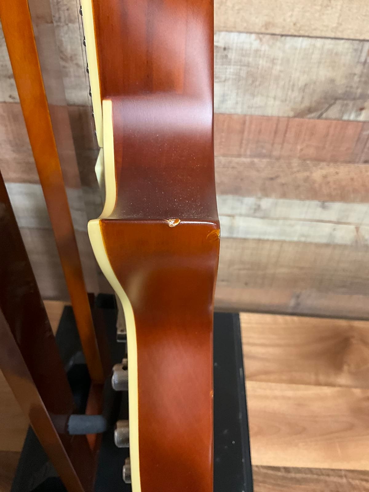 Has a dent in the body (shown) and a missing battery cover. Besides that, the guitar is in excellent shape and has the original fishman pickups.