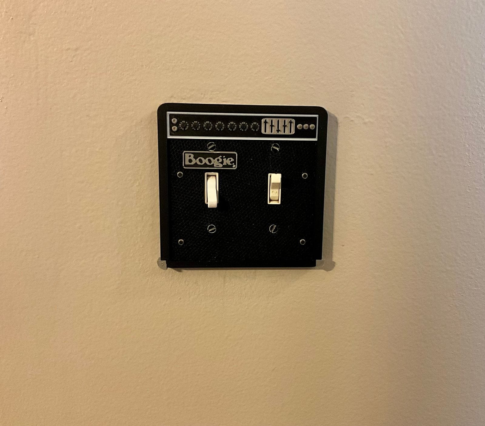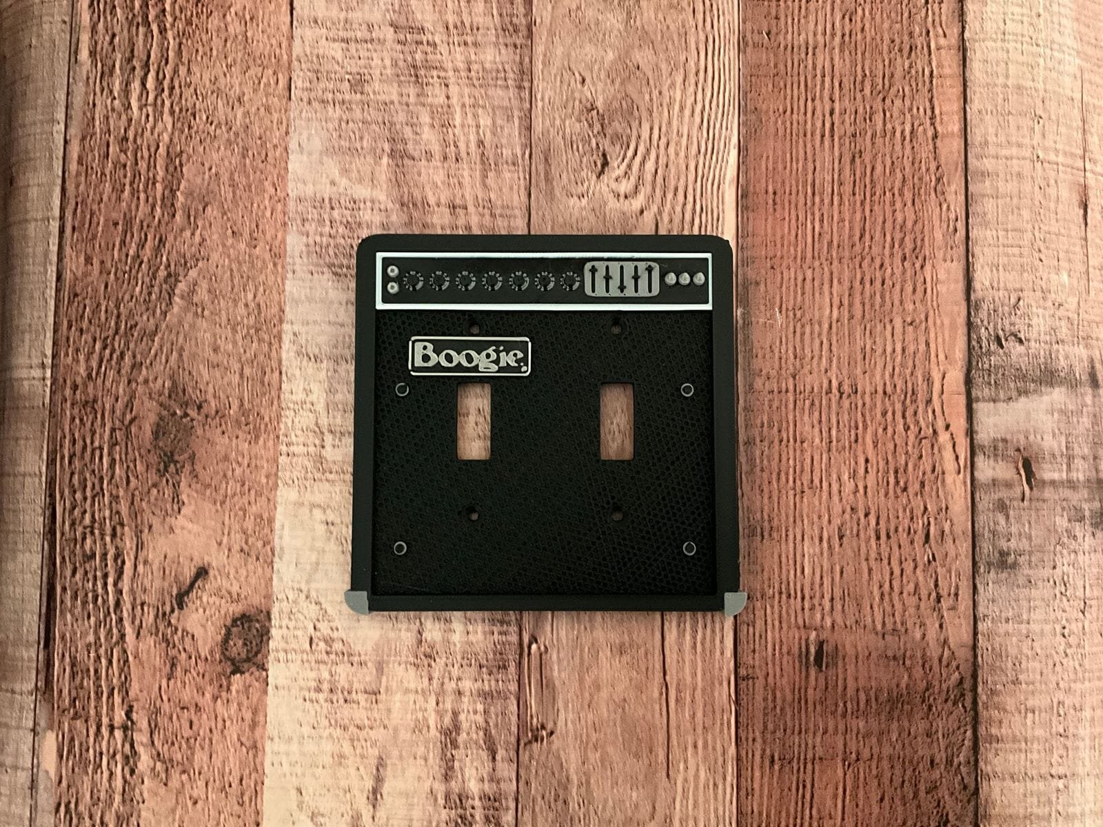 Mesa Boogie-inspired 3D printed 2 switch wall plate. This would look great in a home guitar room.