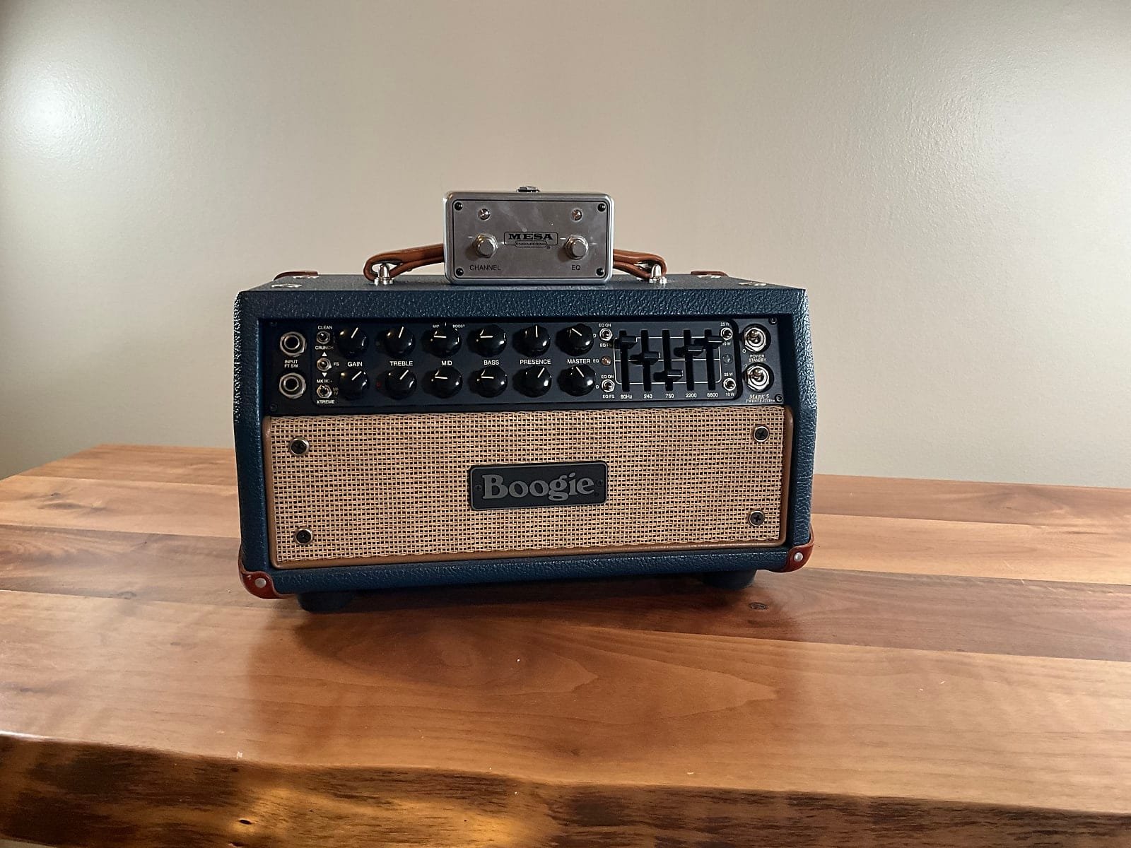Up for grabs is a Mesa Boogie Mark V:25 head in a stunning custom blue skin finish. This compact powerhouse packs all the legendary Mark Series tones into a lightweight, gig-friendly package—perfect for stage, studio, or home.